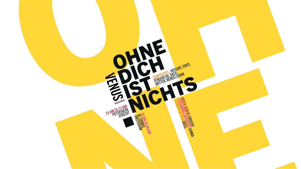 Kamerkoor Venus onder leiding van dirigent Krista Audere Laurens de Man, orgel Cassandra Luckhardt, viola da gamba